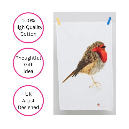Gift Boxed 100% Cotton Robin Redbreast Tea Towel