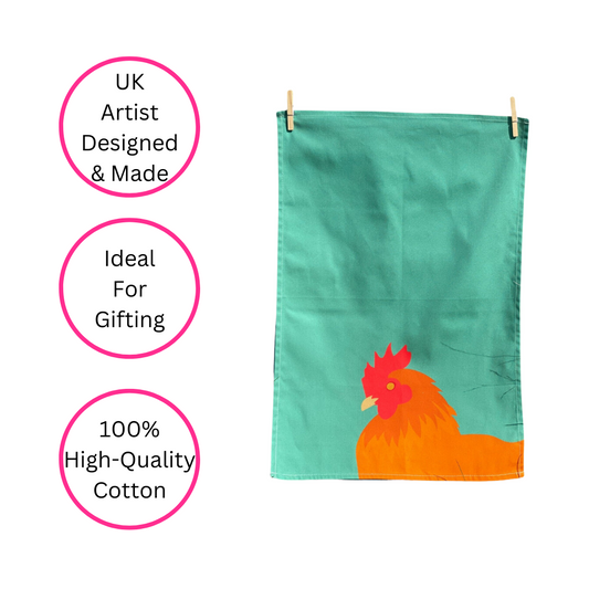 Sold outGreen Chicken Tea Towel
