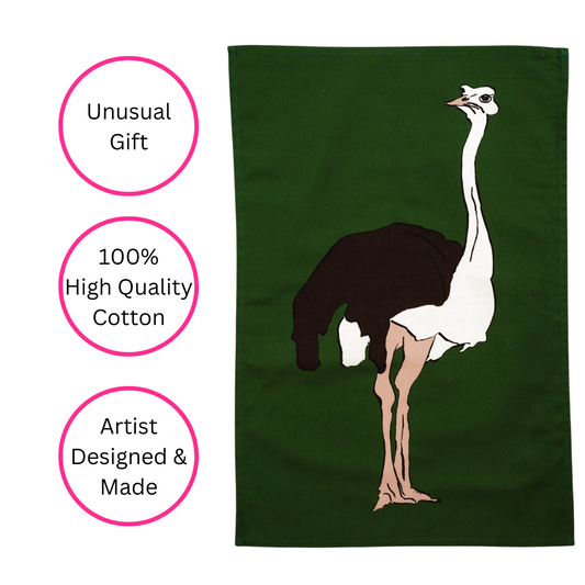 100% Cotton Green Ostrich Tea Towel